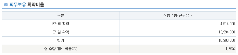 | 의무보유확약 비율 | 1.69% |