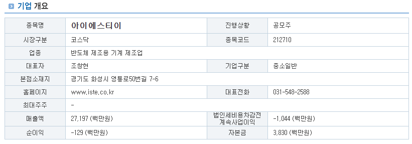 아이에스티이 공모주 기업 분석